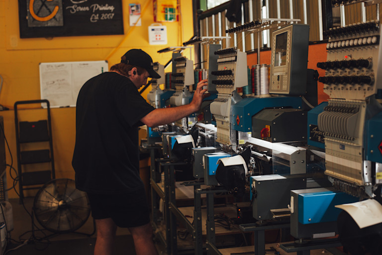 Finish & Inspect – Excess backing is removed, threads are trimmed, and the piece is quality checked, leaving a elevated, durable design on your garment.