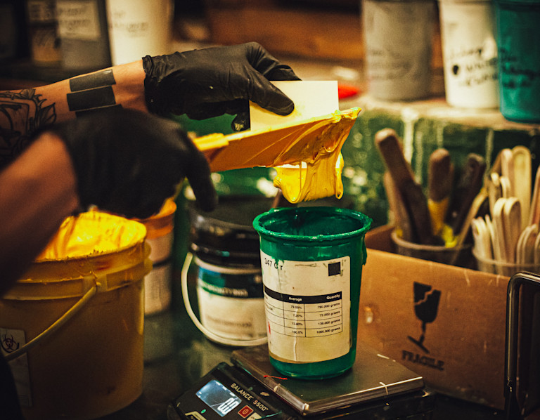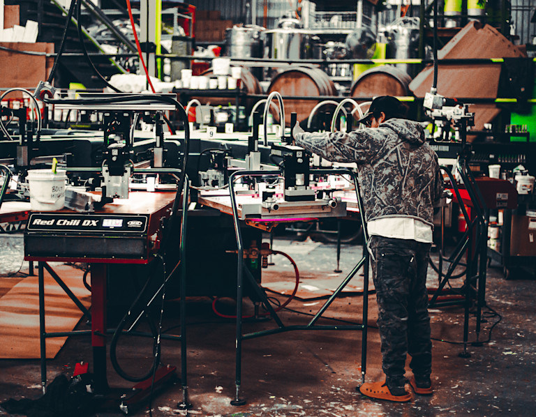 Screen printing is a unique process in which ink is moved through mesh to the material of a garment, according to a design made with the help of a blocking stencil.