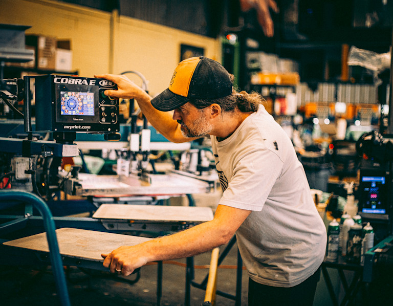 The print stroke then causes the ink to be pushed through the stencil along a pre-determined line of contact, bringing the design to life on the fabric.