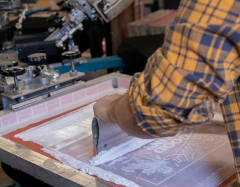Screen printing is a unique process in which ink is moved through mesh to the material of a garment, according to a design made with the help of a blocking stencil.